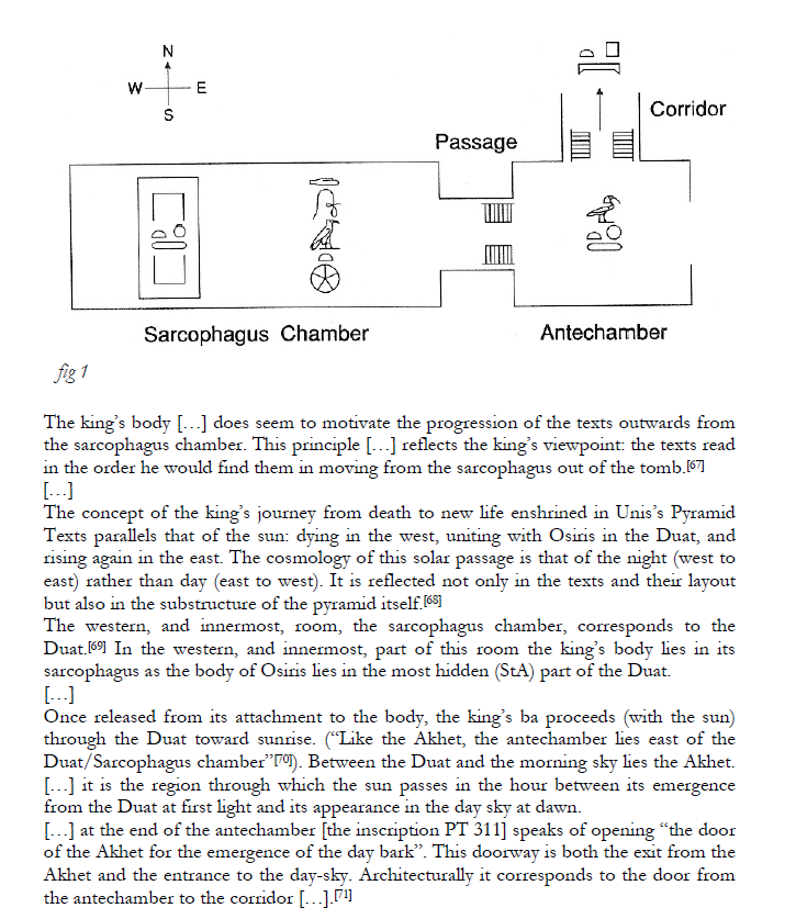 The Unis pyramid is a burial pyramid, not an initiatory pyramid. Text or hieroglyphics and not written inside of the initiatory pyramids. The other difference is an initiatory pyramid is made of blocks of stone, where the burial pyramids are made of rubble with an outside casing.. The Unis texts are unique in the sense that that are some of the oldest and best preserved carved text in a burial tomb. I have been inside this “pyramid” four times. When I found these resource links listed below, I felt I had to share it with everyone.