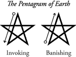 So far, so good. Things get complicated, however, by the fact that the lower “X” of the Pentagram—the paths joining Fire/Air and Water/Earth—are reserved for the element of Spirit or Quintessence, as those two paths connect and unite the active and passive elements respectively. Consequently, these two paths are unavailable for use in drawing an Earth banishing pentagram. In the LBRP, you start at the Earth vertex and move away from it to banish. Because you can’t use the path of Spirit Passive to do this, however, you use the path between Earth and Spirit instead, tracing the figure the only way you can—which is clockwise.