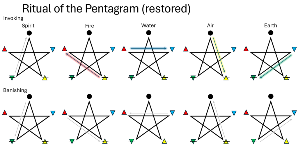 The ritual of the pentagram has had so many different versions and interpretations, over many centuries, by so many different people and groups of practitioners.